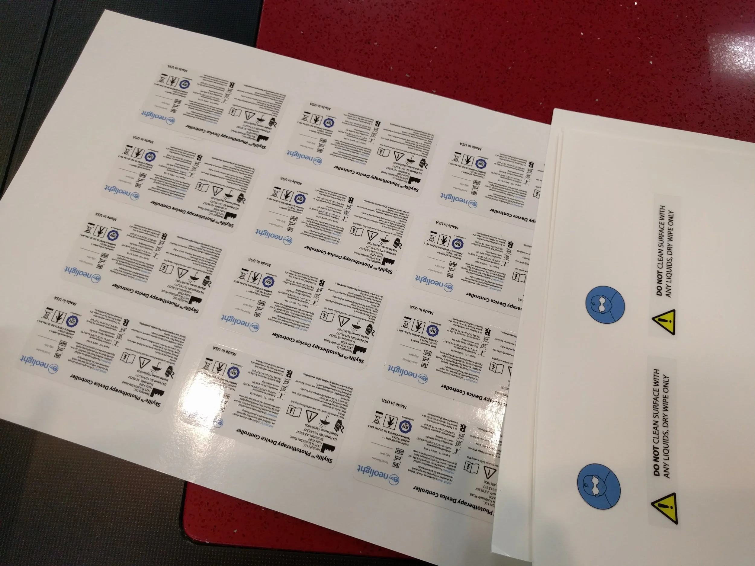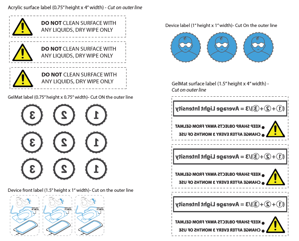 Designing labels, based on medical device standards, to inform the user about certifications, use, storage and transport conditions, caution and warnings, and service, repair or disposal procedures. Finding vendors and printing label samples to test them for usability, hazardous conditions and bio-compatibility as required b FDA.